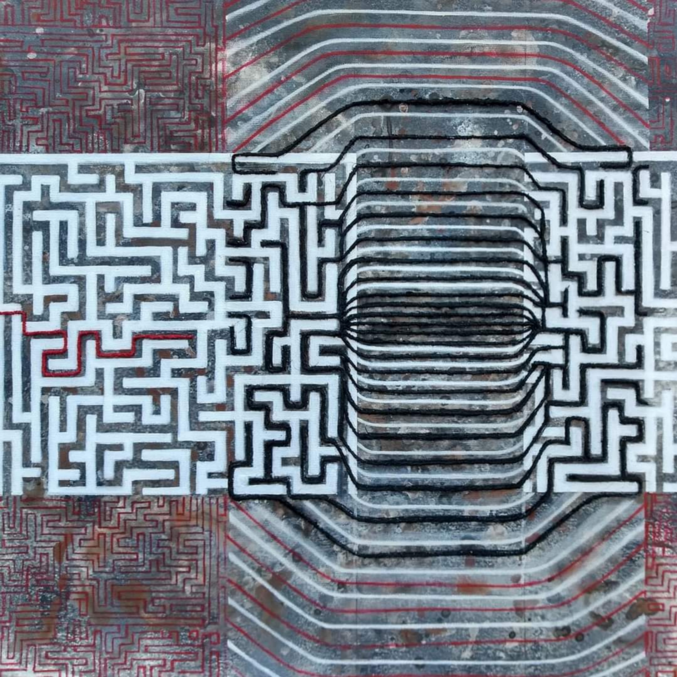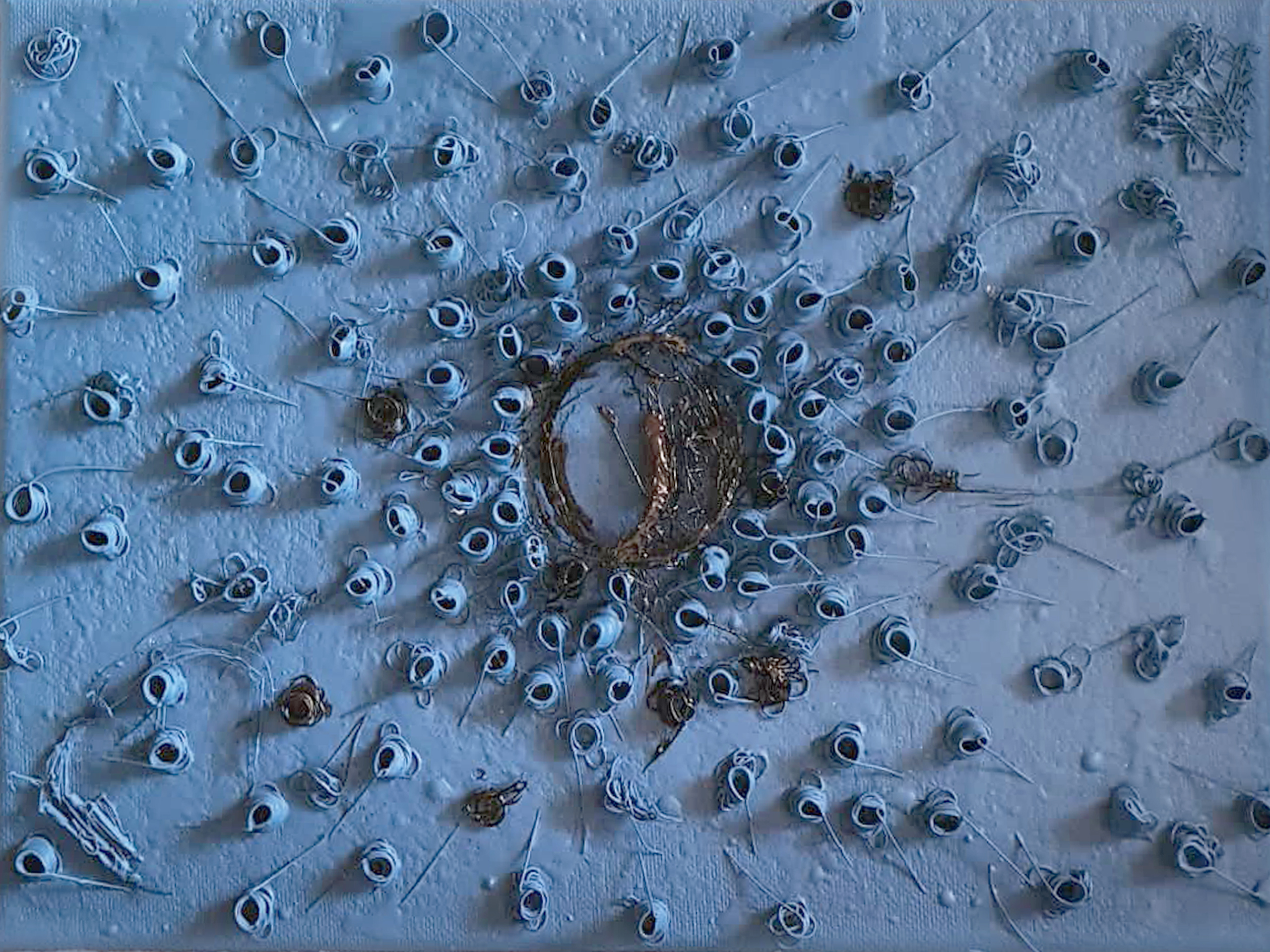 Tamara Maj, Mandala malarza nie pokojowego, kolaż, 50×50 cm