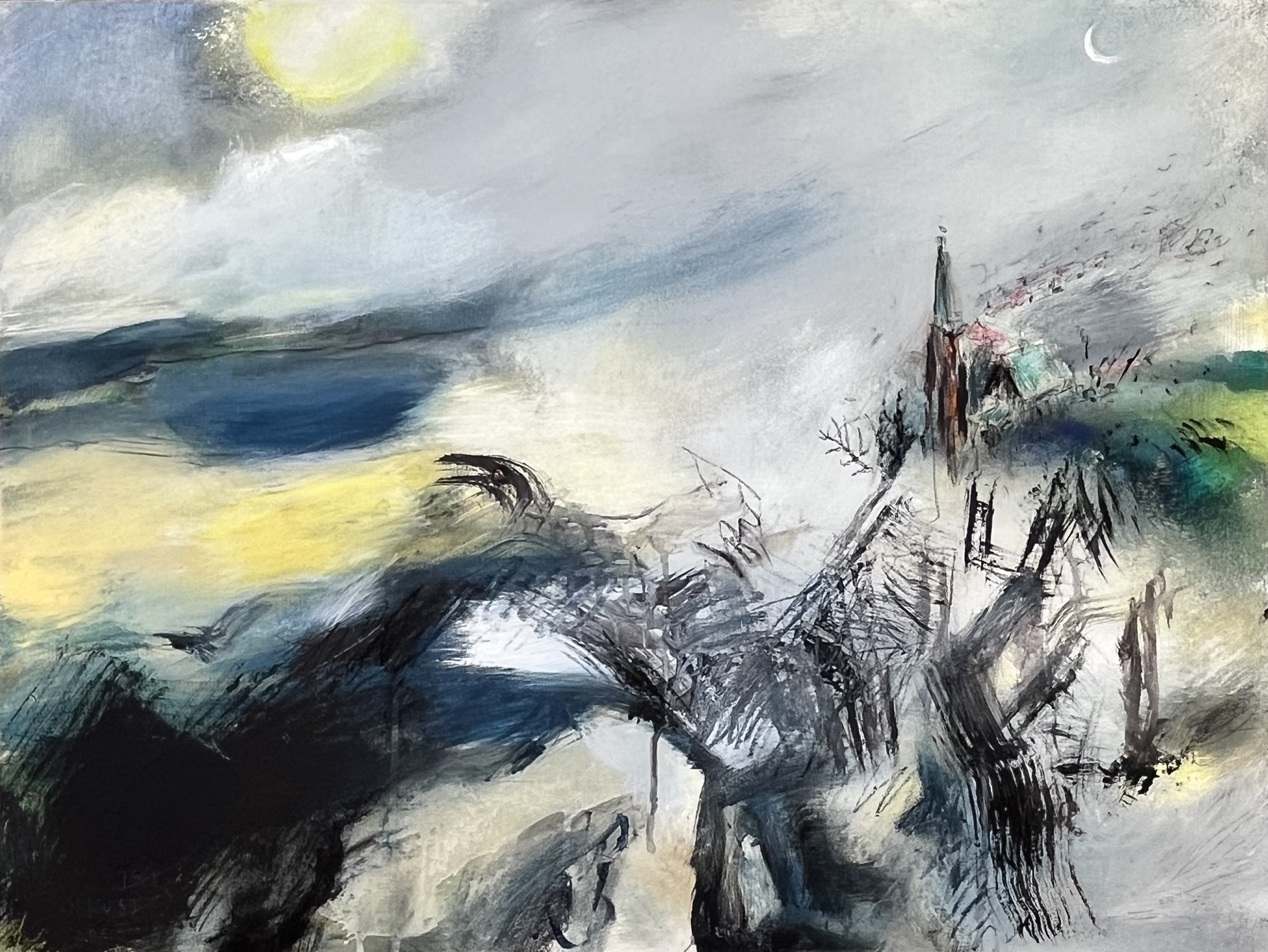 Paweł Olchawa, Księżycowy las III, 2024, tech. mieszana, 70 x 50 cm
