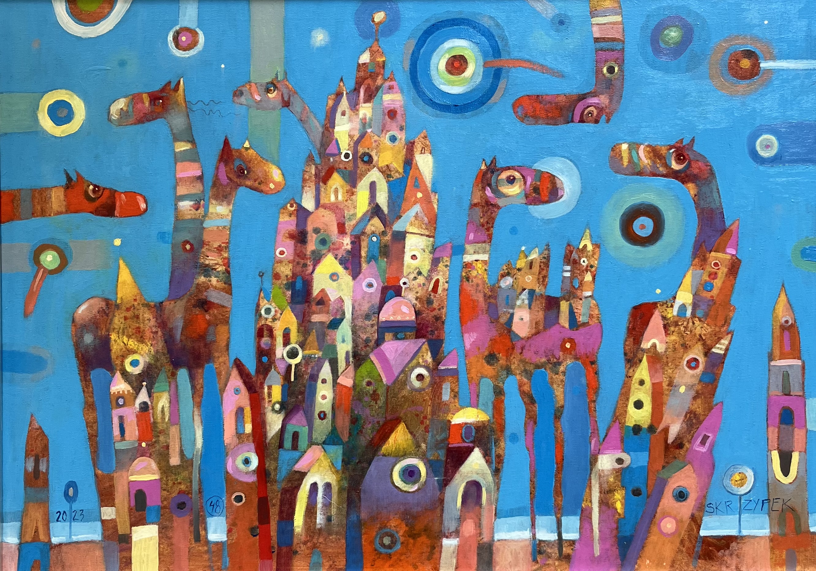 Walerij Jemcew, Podróż po Olkuszu, akryl, 80 x 60 cm, 2023 r.