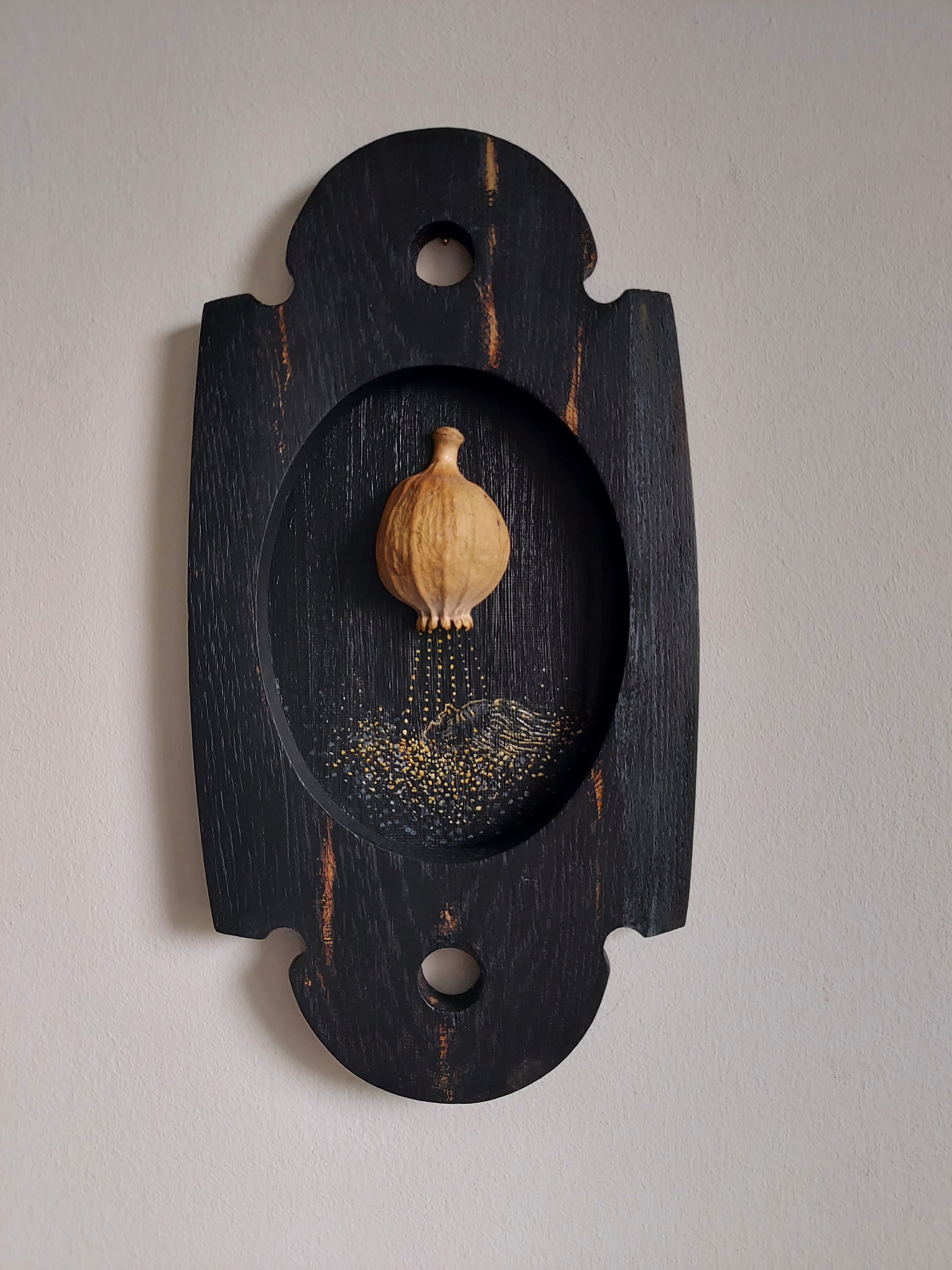 Sebastian Brożyna, Epitafium, 24 x 44cm, asamblaż