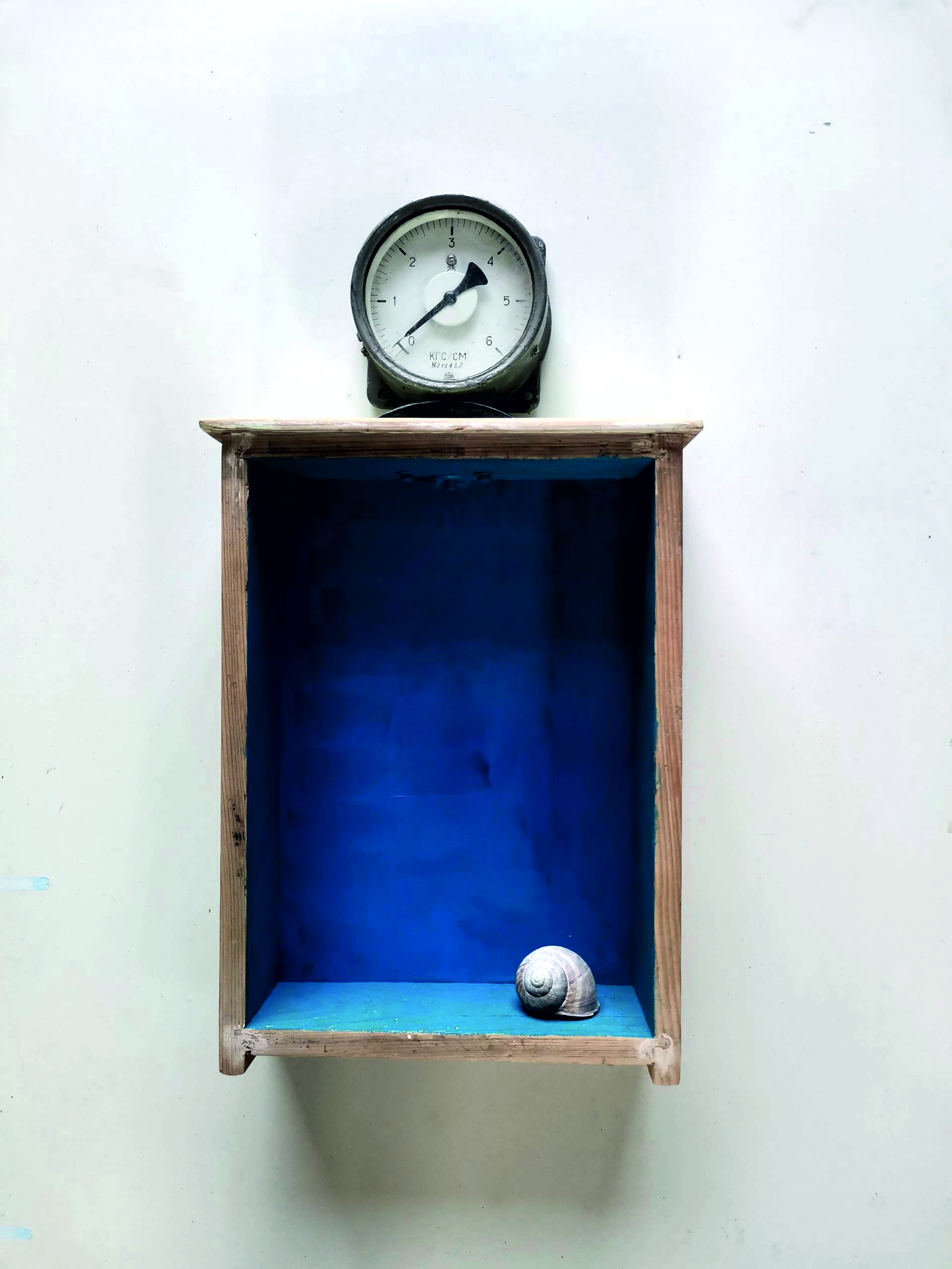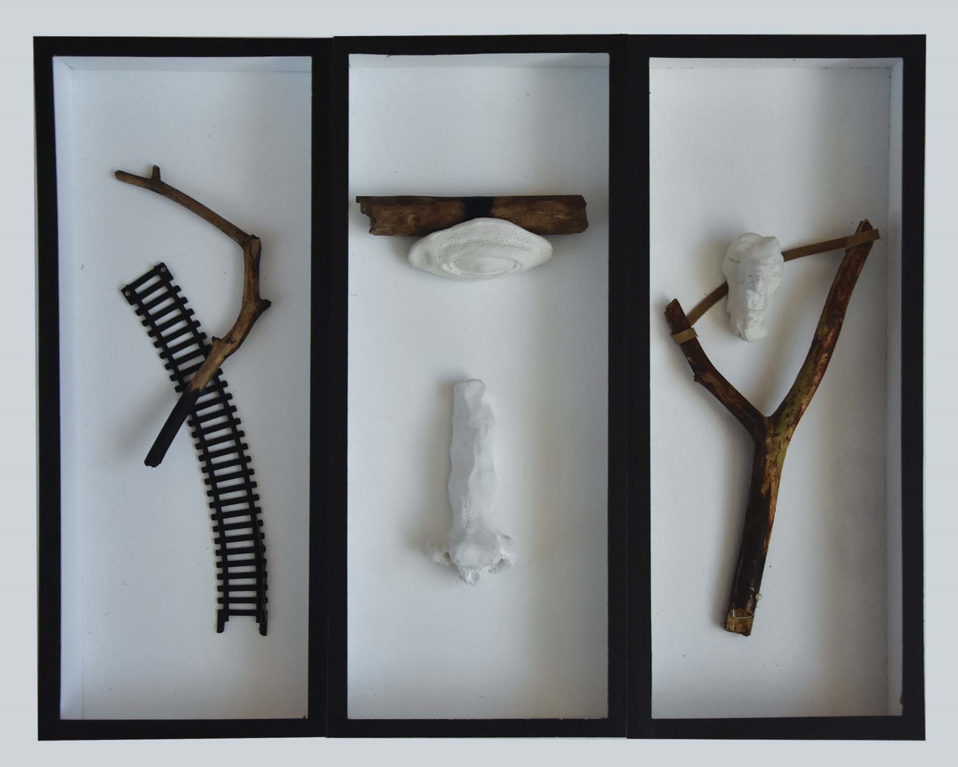 Waldemar Rudyk, Esej o polnej drodze, asamblaż, 42 x 30 x 4 cm