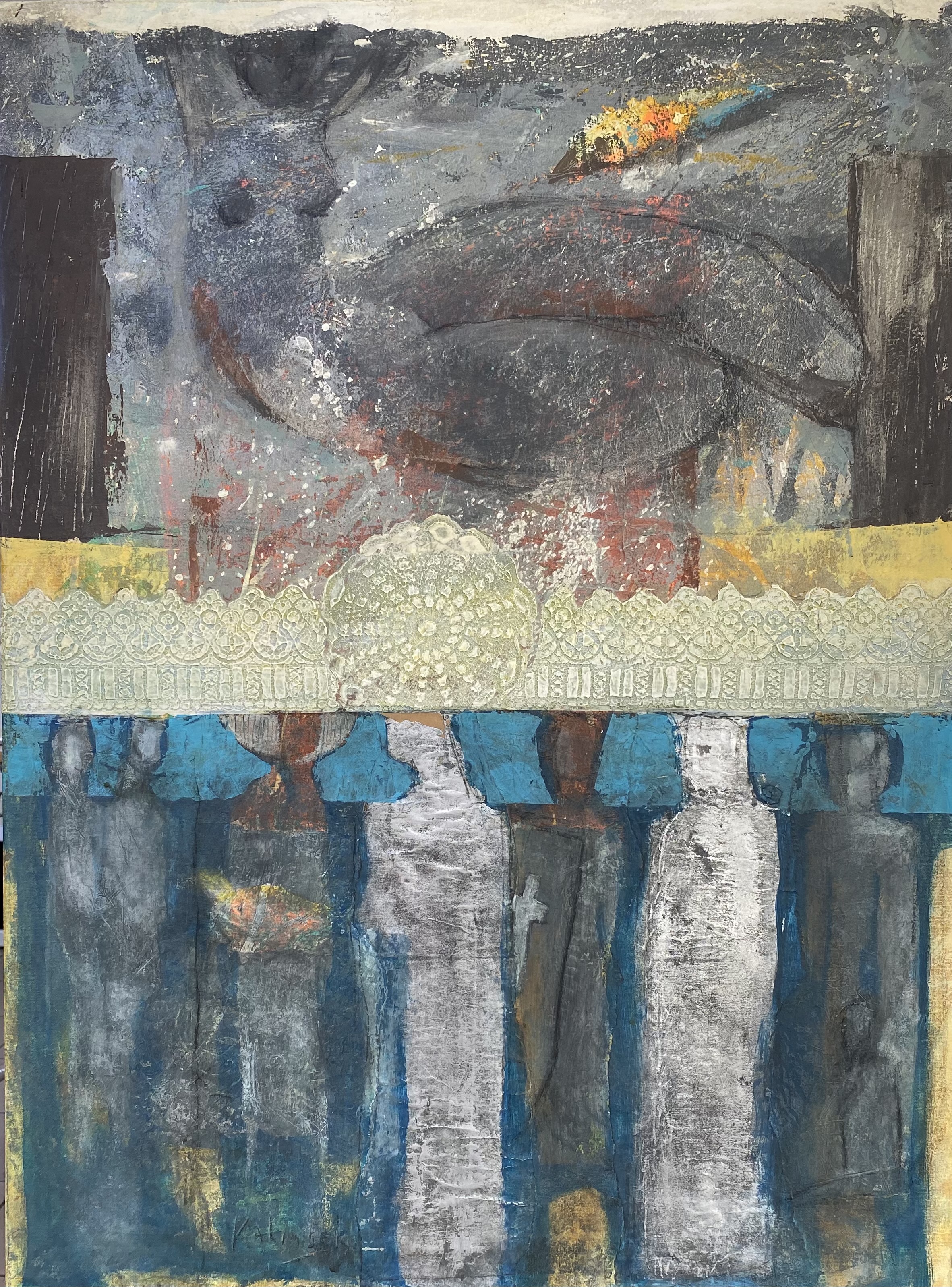 Joanna Zając- Slapničar, Opowieść niebieska, 50 x 70 cm, technika mieszana