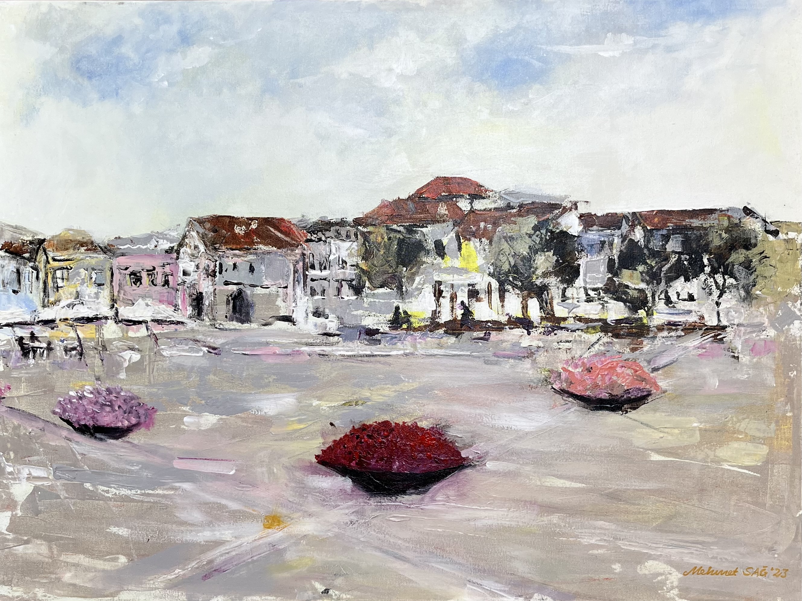Oleksii Vakarchuk, Rynek w Olkuszu, akryl, 60×80 cm, 2022 r.