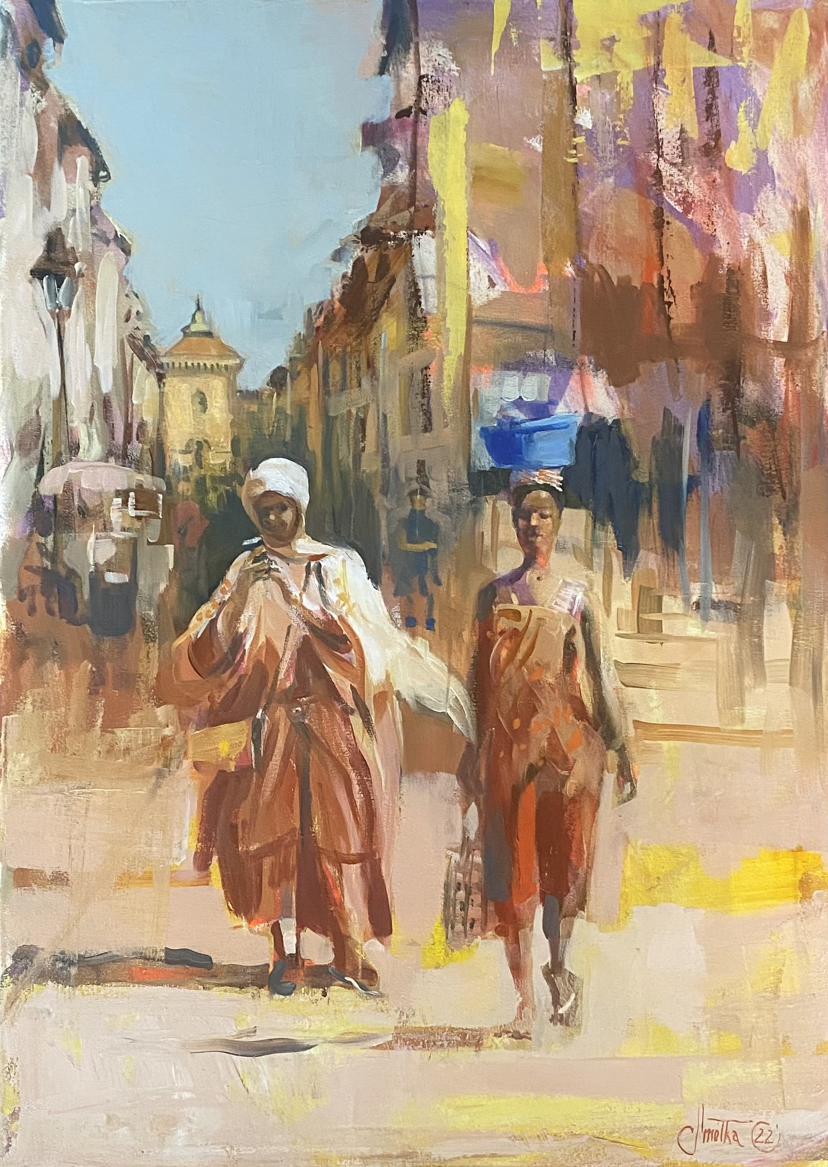 - Aleksandra Zuba- Benn, „Spacery wieczorne I”, technika olejna