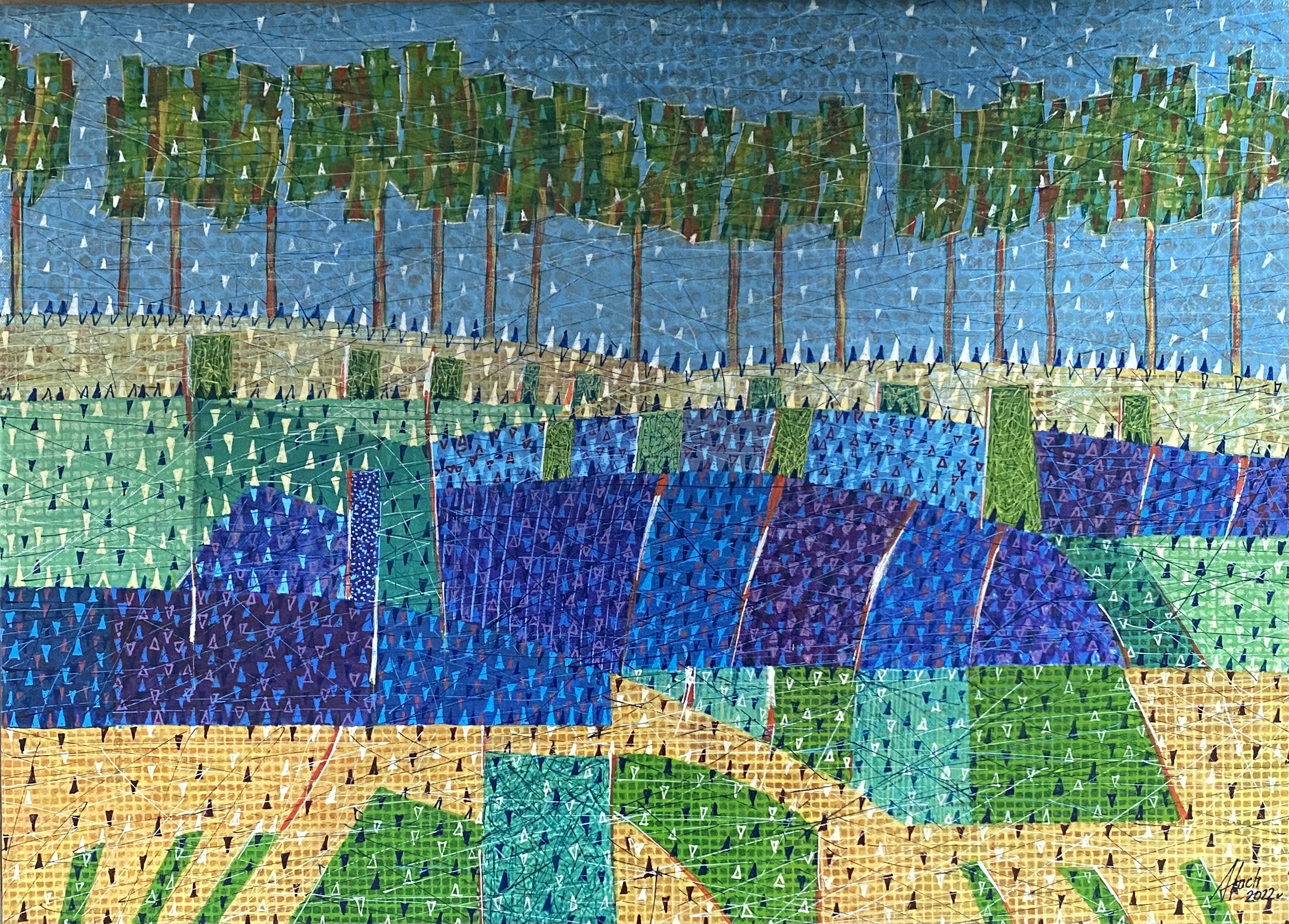 - Barbara Szyc, „Pejzaż”, technika pastelowa, kolaż