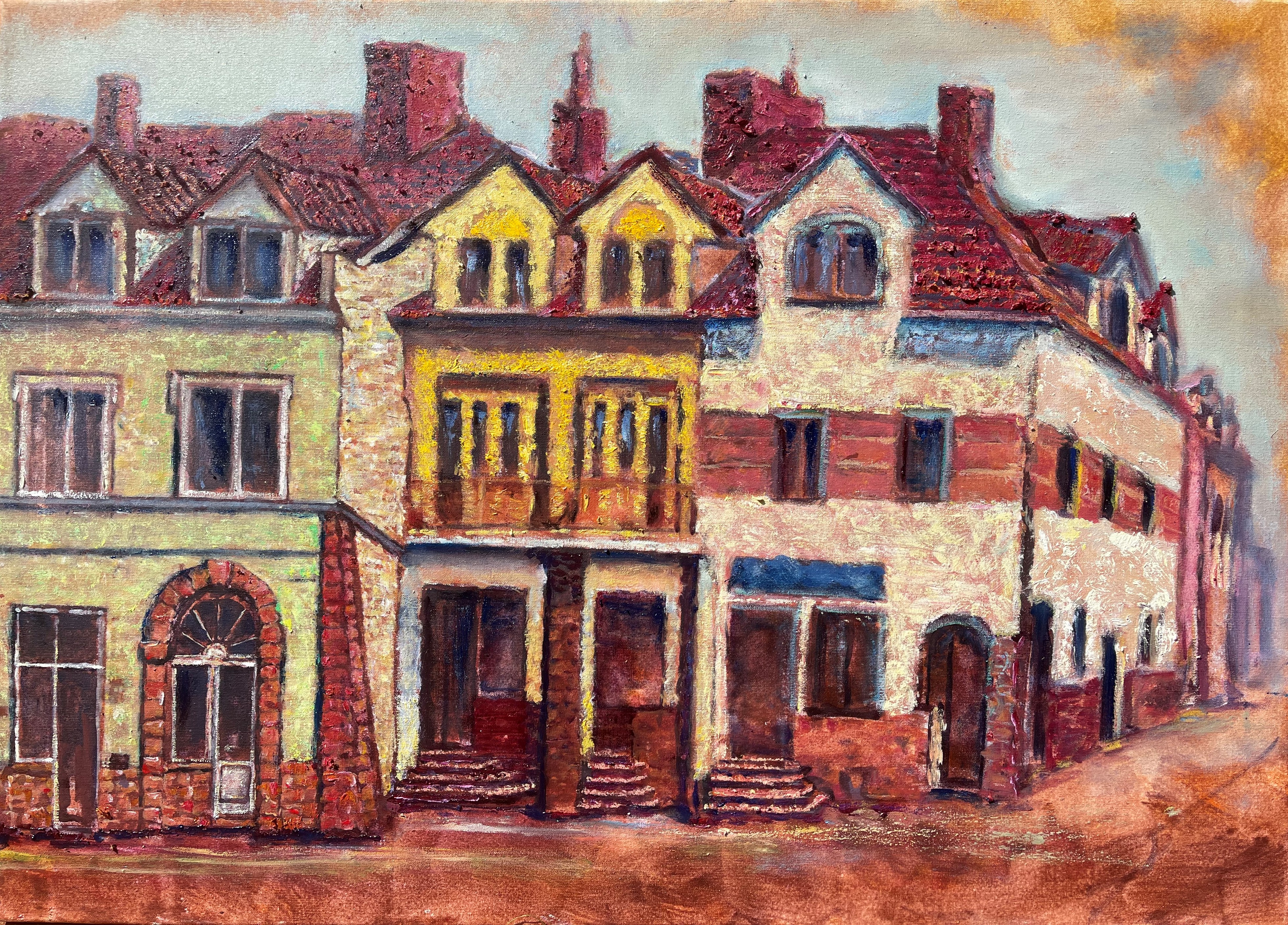 Tomasz Awdziejczyk, Kamienice Rynku olkuskiego 50×70 cm, technika mieszana