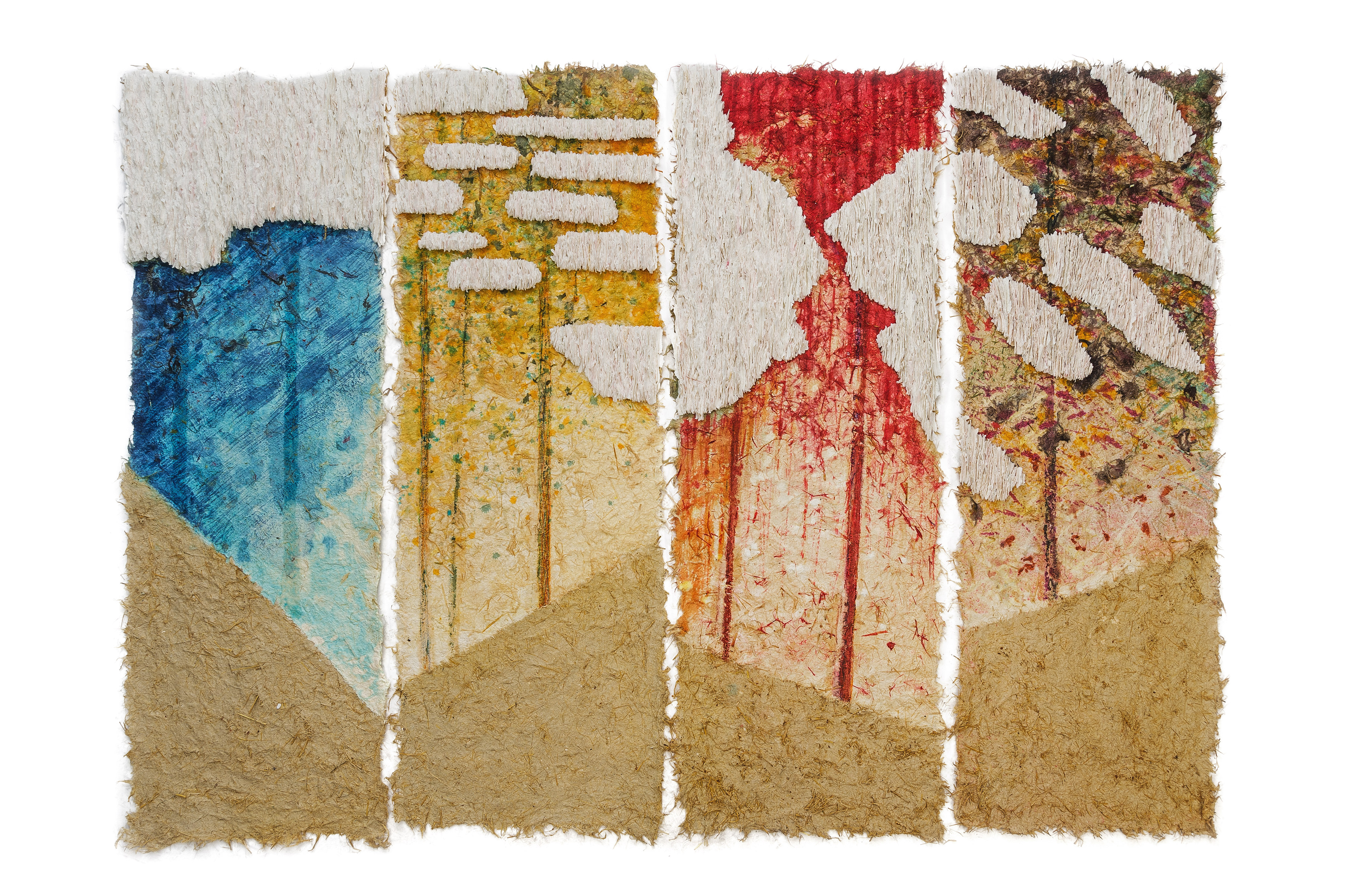 Elżbieta Zrobek, Park, papier organiczny, 130×45 cm, 4 sztuki