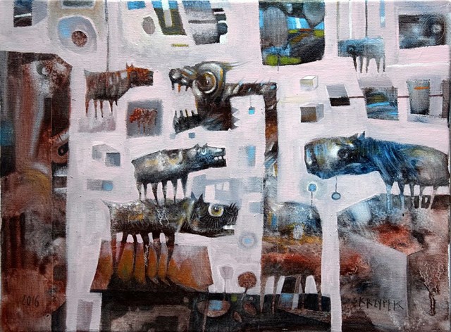 Joanna Zając-Slapnicar, Pod nadzorem, akryl, 40 x 30 cm
