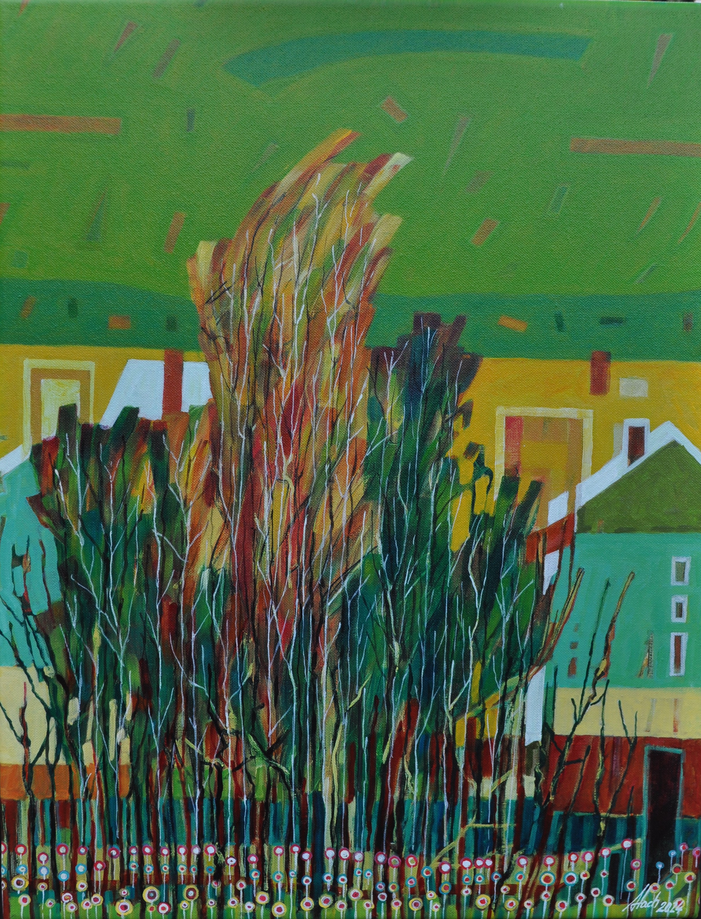 Morazo Jajan, Wiosna i wiosna, akryl, 60 x 80 cm