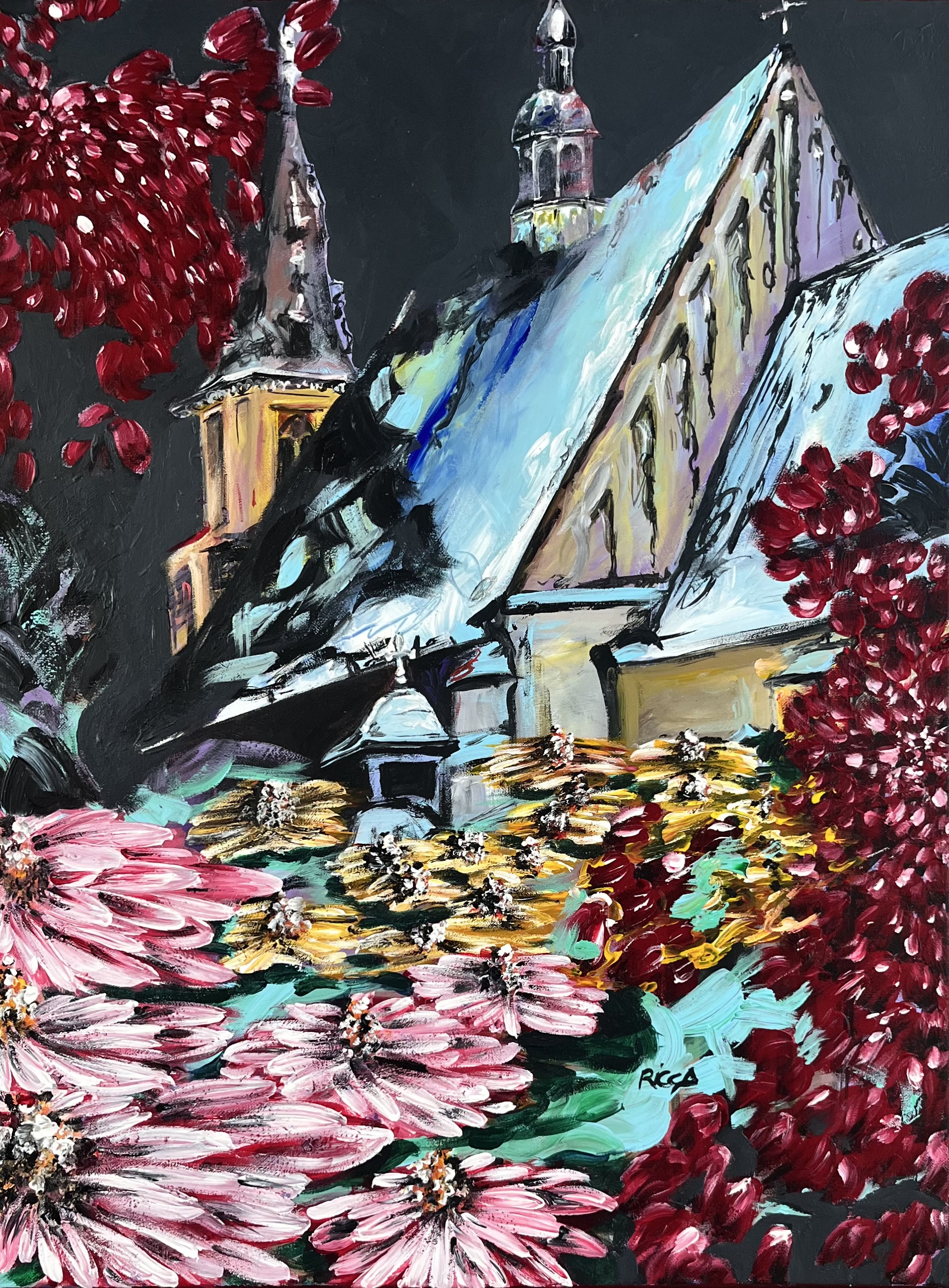 Federicca Ricca, Bazylika Św. Andreja Apostoła – Olkusz, akryl, 80 x 60 cm